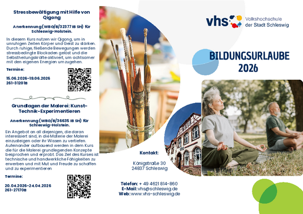 Bei Interesse schicken Sie bitte Ihr Kurskonzept und den Qualifikationsbogen an vhs@schleswig.de. Vielen Dank.